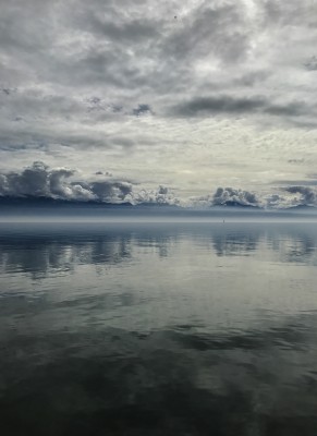 L’expérience du lac se termine toujours par une image, choix effectué parmi plusieurs images produites chaque jour. Je nage un kilomètre en dos crawlé sur le dos toute l’année depuis 2014, j’ai deux endroits de prédilections, les points de vue sont donc presque toujours les mêmes. C’est une pratique, quotidienne, une méditation, un protocole. L’image ne traduit pas l’expérience, le froid ne se ressent rarement dans une image, ni l’odeur. Pourtant l’acte photographique fait partie de l’expérience et du souvenir que je peux partager. En ce sens il est une pure mécanique à la manière de Roman Opalka, les pratiques ne se substituent pas, mais s’additionnent, elles sont pour moi inséparables. Instagram me permet de délivrer chaque jour l’humeur du jour, ce jour-là le lac est ainsi à cette heure-là. Et j’aime cette distribution quotidienne, je n’oserai pas publier une image qui ne soit pas du jour, la publication fait également partie du protocole.