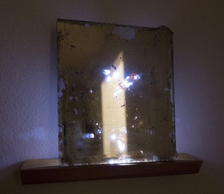 Technique : Miroir ancien, Leds, Baguette de bois en mélèze biseautée