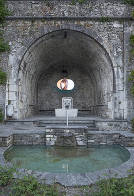 ancien lavoir de la ville de Nyon, juste au-dessous de la place romaine, une voûte comme un espace de projection mentale. Je le considère et le choisis pour ses qualités spatiales et théâtrale plutôt que pour sa fonction sociale initiale. Un espace un peu protégé, hors du temps.