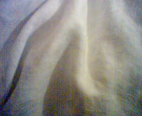 Un nuage déchiré dans le bureau de la doctoresse/chirurgienne, déchiré mais presque rétabli pour une reproduction photographique;