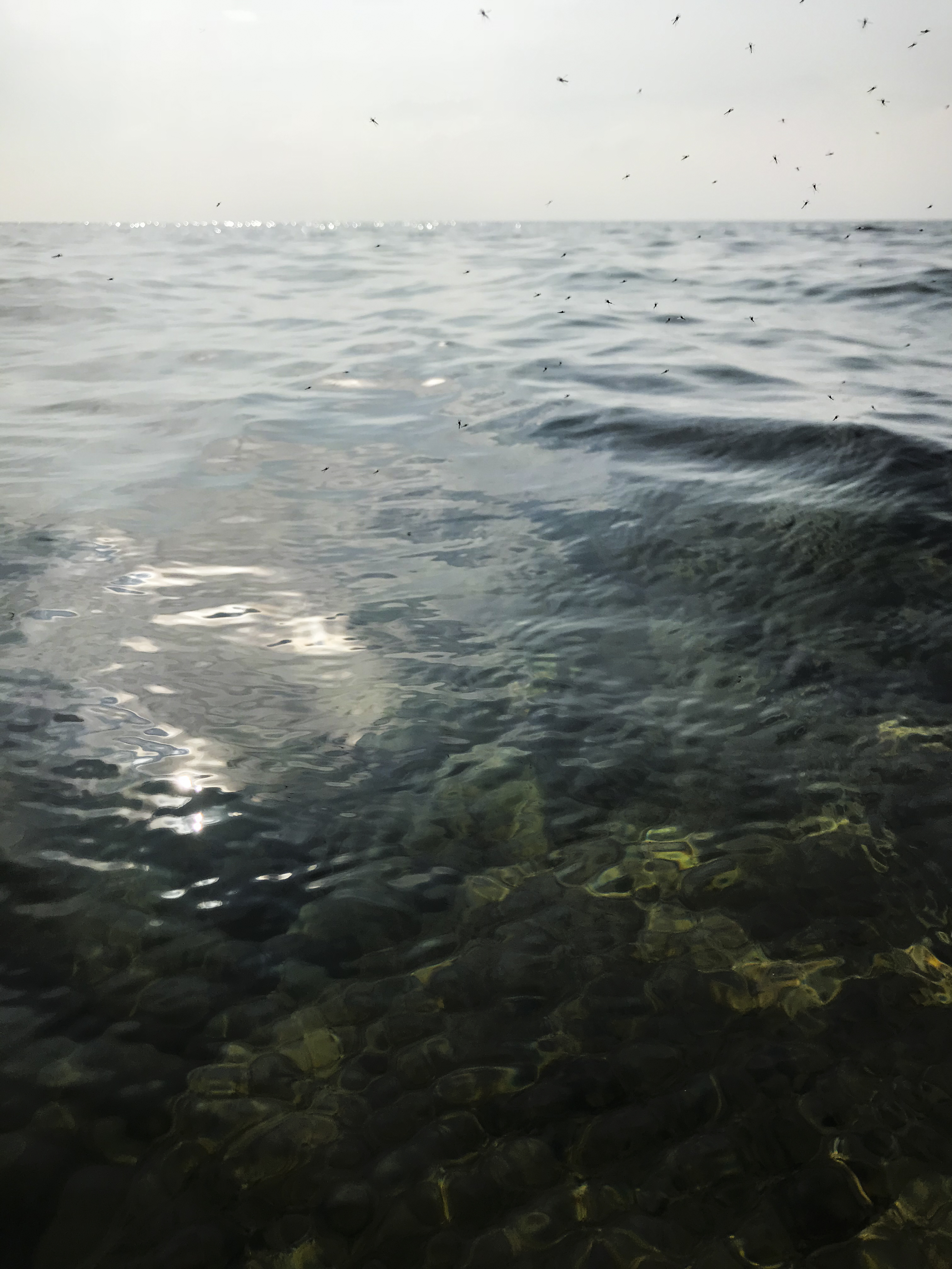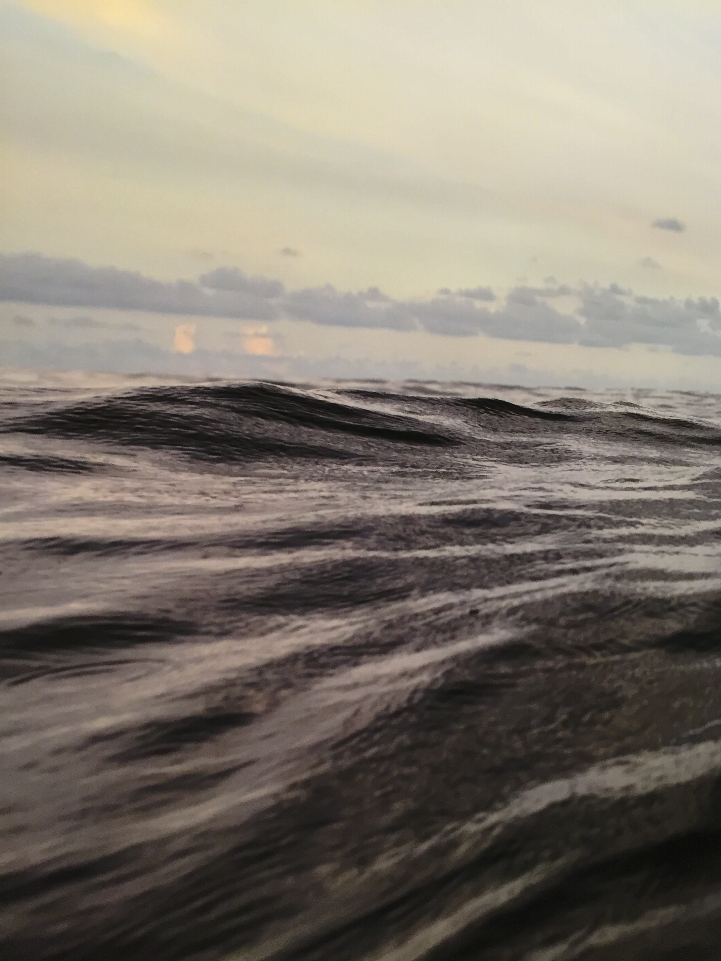 Les oreille à moitié dans l’eau, j’entends le rythme que je produis, mais l’espace sonore est modifié, comme distendu. Le temps a disparu. A l’aller, il m’est difficile d’ouvrir les yeux tout le temps, le ciel est éblouissant. J’essaie de ne pas penser.